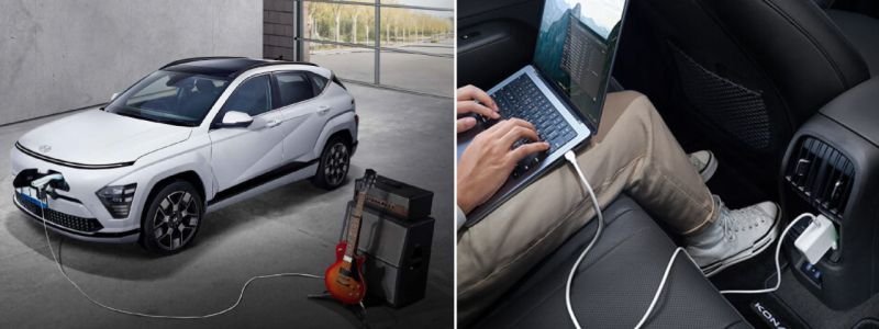 Fitur V2L memungkinkan KONA menjadi sumber daya listrik sebesar 3 kW