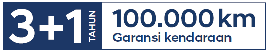 Garansi kendaraan 4 tahun/100.000 km, mana yang tercapai terlebih dahulu.