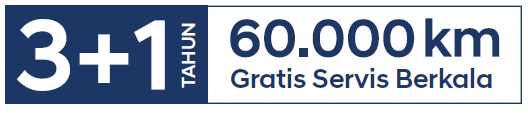 Gratis jasa dan suku cadang servis berkala 4 tahun /60.000 km, mana yang tercapai terlebih dahulu.