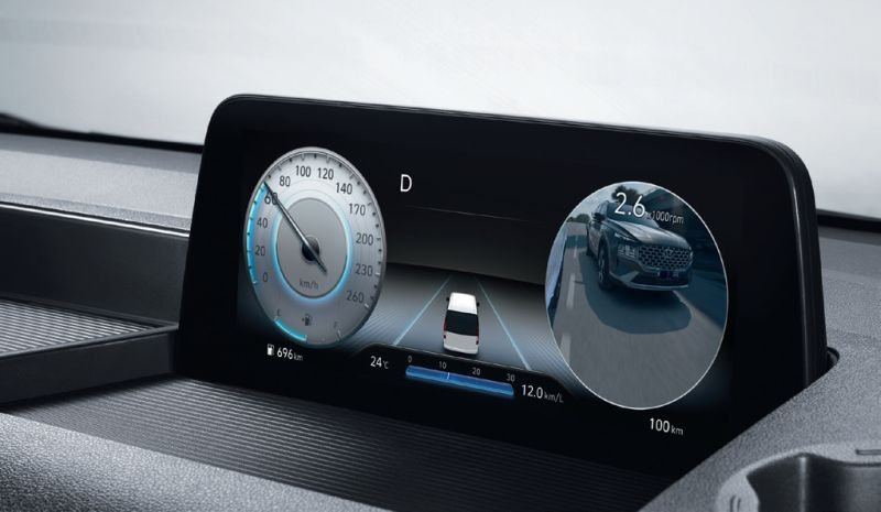 Saat pengemudi menyalakan lampu sein untuk berpindah jalur, fitur keselamatan ini akan menampilkan video di dalam cluster atas objek blind-spot pengemudi di area tersebut.